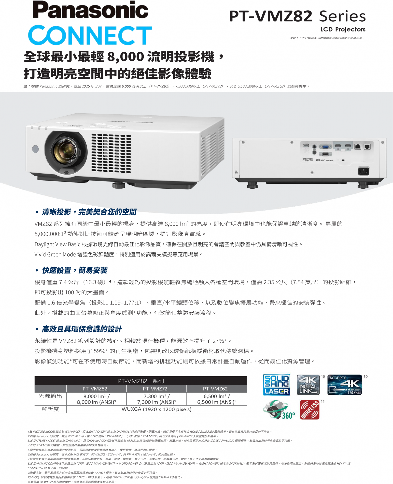 Panasonic PT-VMZ82 Series LCD Projectors 全球最小最輕8,000流明投影機, 打造明亮空間中的絕佳影像體驗